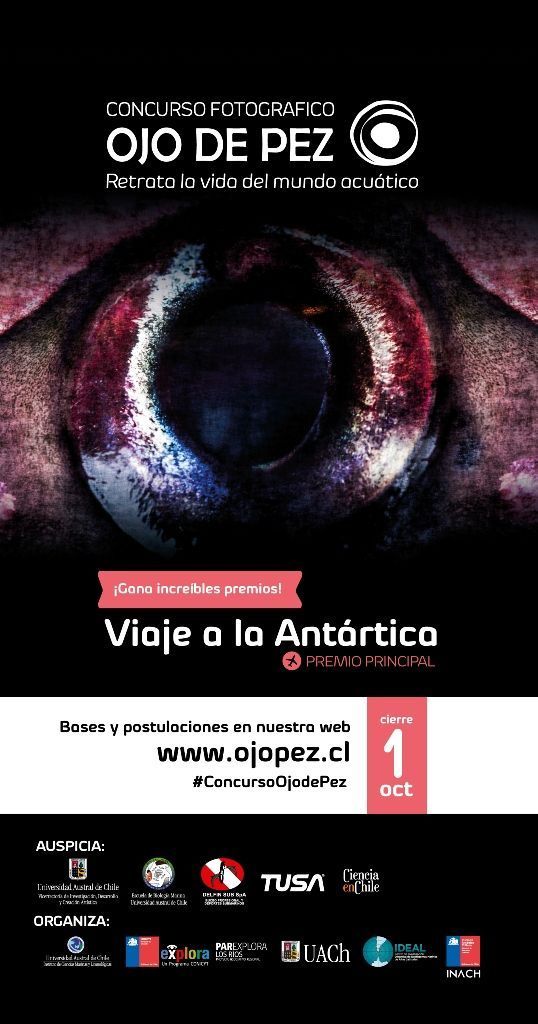 La Universidad Austral de Chile y el Instituto Antártico Chileno invitan a fotógrafos, aficionados o profesionales, a participar del concurso “Ojo de Pez”, iniciativa que desde el año 2003 busca promover la valoración de los ecosistemas acuáticos del país, relevando la importancia de estos para la subsistencia humana, su vulnerabilidad y la importancia de protegerlos. Esta versión del concurso incluye entre sus premios la posibilidad de conocer y fotografiar la Antártica.