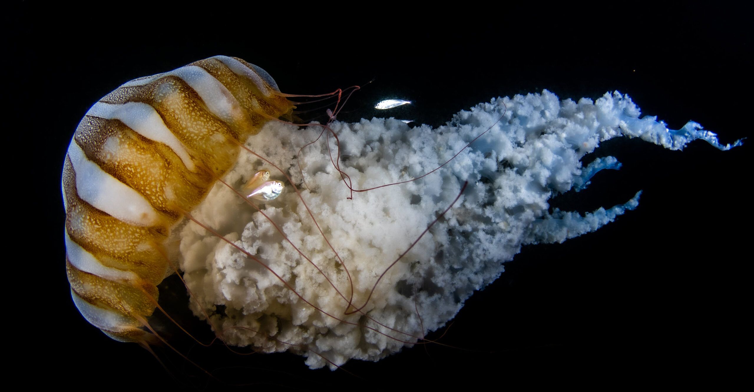 A fines de primavera el mar de Coquimbo es visitado por estas medusas, a veces de manera masiva. En sus brazos viven peces mantequilla inmunes a los tentáculos ponzoñosos, en una asociación mágica.